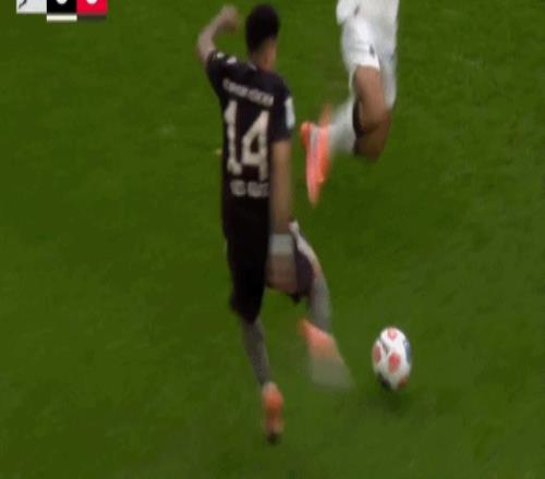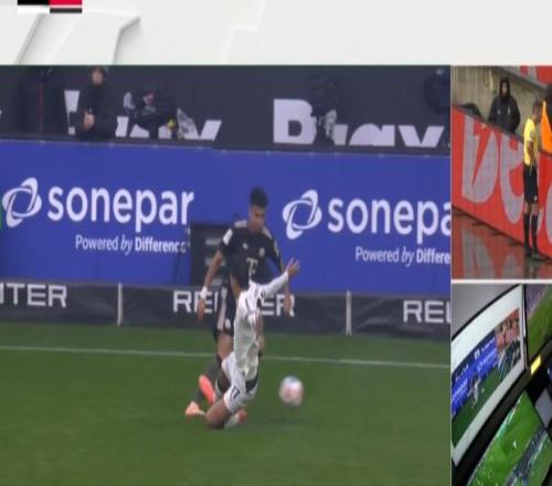 随后,视频助理裁判介入判罚,并且要求主裁判回看慢镜头。从慢镜头来看,卡斯特罗普不仅没有铲到球,而是直接蹬在了迪亚斯的脚踝上。