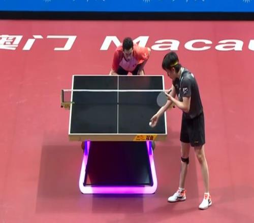 第六局比赛,王楚钦又取得5比1领先,继而打到8比3领先。这时候,黄镇廷加快了进攻,连得4分追到了7比8。王楚钦叫了暂停。暂停回来,黄镇廷继续抢攻得分,扳平了比分。王楚钦出现失误,黄镇廷实现了反超。随后一球,黄镇廷又主动进攻拿到了局点。