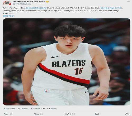 Mike Richman同时表示:“比卢普斯和开拓者对杨瀚森的期待值太高了,认为他是即战力。今年季前赛,所有人都在称赞杨瀚森,说他很优秀、有天赋、技术娴熟。到了常规赛前几场,他几乎是第一个替补上场的球员,但表现总是很挣扎。”
