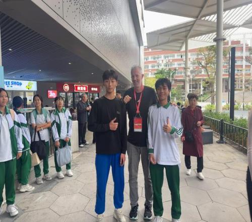 从五山地铁站走到华农体育场短短的几百米,中国男排主教练维塔尔·海宁好几次停下来和热情的市民合影。海宁出生于比利时,曾执教波兰男排、德国女排等队伍,于2024年出任中国国家男子排球队主教练。“在波兰我很少会和别人合影,但是在中国我非常愿意从不拒绝。”说罢,他揽着孩子们露出标志性的笑容。