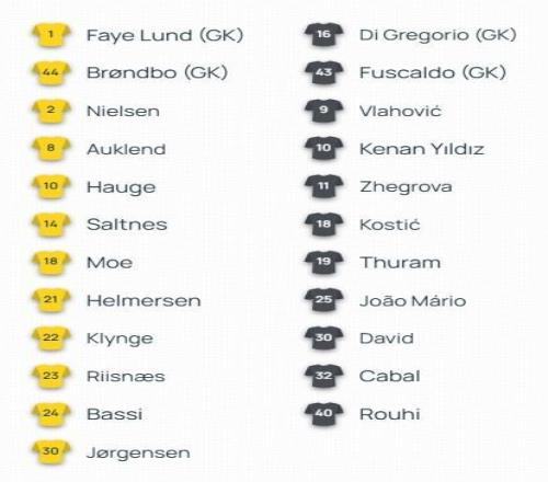 北京时间11月26日04:00,欧冠 联赛阶段 第5轮,博德闪耀主场迎战尤文图斯,赛前双方球队首发名单公布如下: