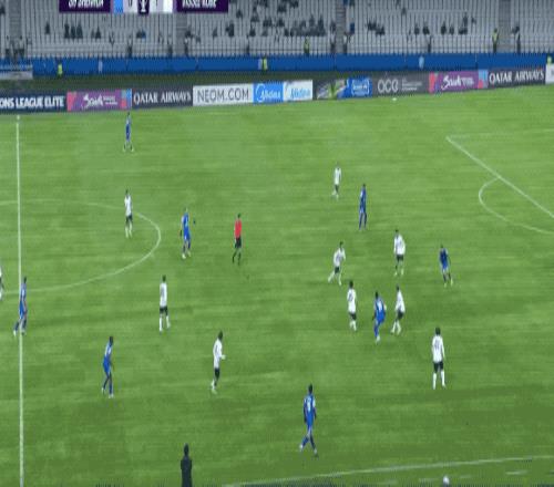 第14分钟,吴曦送出精准长传,米内罗的跑位带走防守球员,阿苏埃的远射击中横梁。