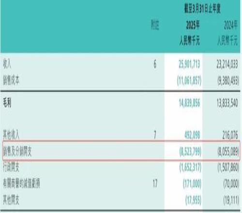 波司登财报显示,2024/25财年销售及分销费用为85.24亿元,费用占比达32.9%,过去五个财年持续上升。营销支出过高,对波司登的盈利产生了一定影响,2022-2025财年其净利润复合增速为19.45%,远低于上一个三年周期的40.58%。