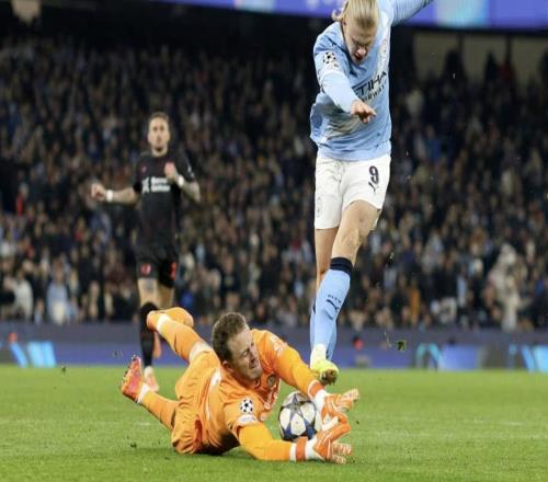 欧冠首败!曼城轮换02勒沃库森哈兰德失良机+连续4轮破门终结