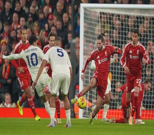北京时间11月23日凌晨,英超第12轮,卫冕冠军利物浦主场对阵诺丁汉森林。比赛中。图源:视觉中国本场一开始,利物浦牢牢占据场上主动,多次威胁对方球门,但始终无法打破僵局,上半场第32
